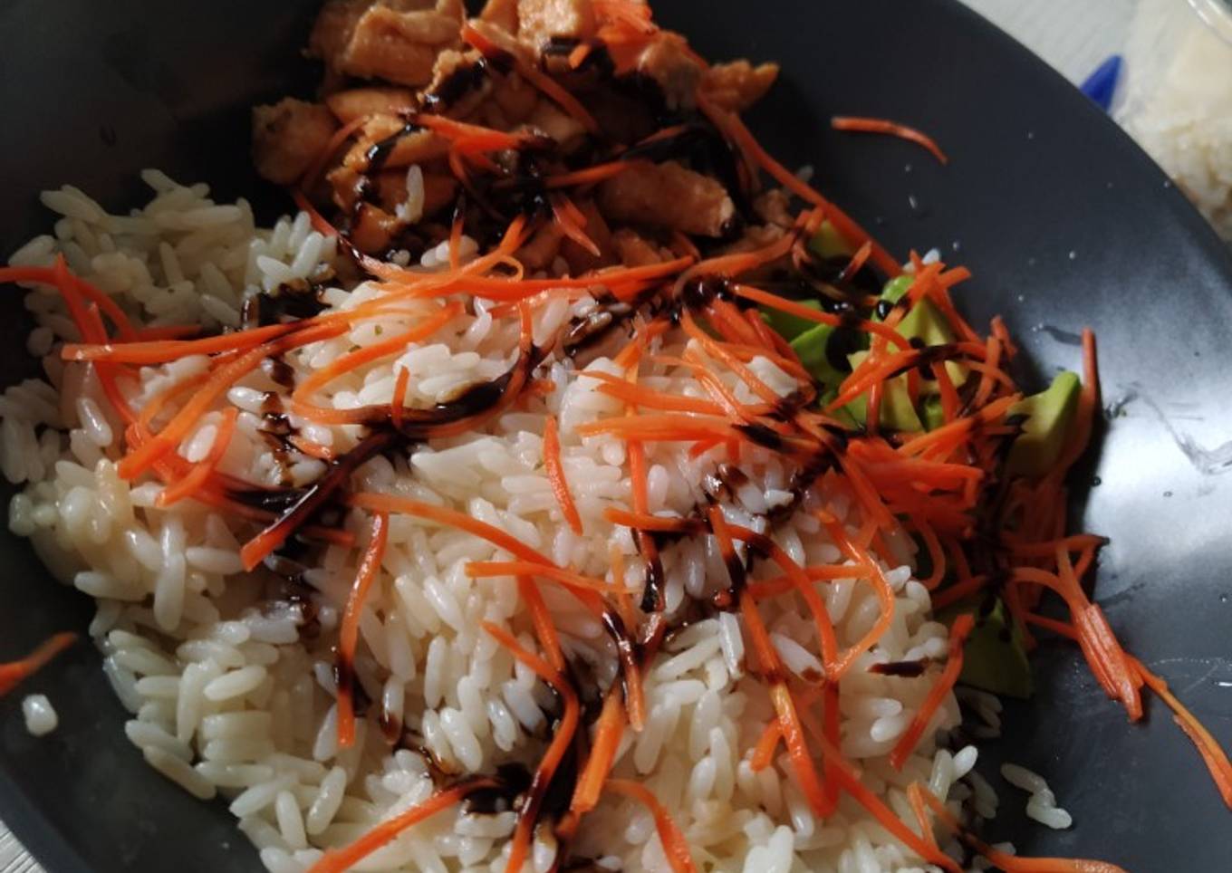 - Cubrimos con zanahoria rallada y un chorrito de bals谩mico de M贸dena y listo.