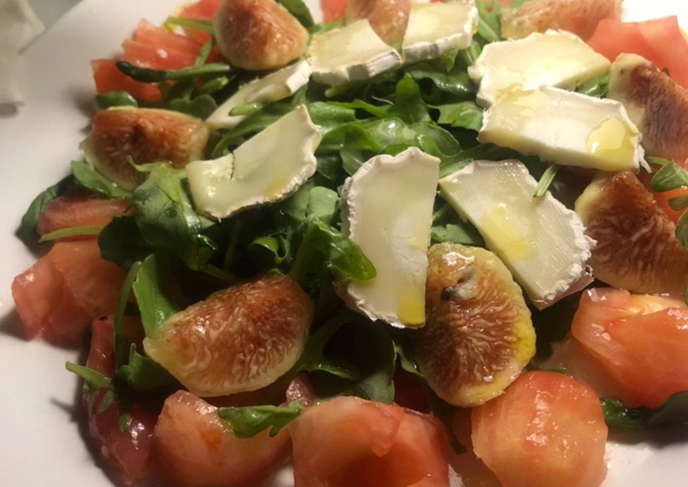 Cena sana: ensalada con higos, queso de cabra, rúcula, tomate y Vidalim
