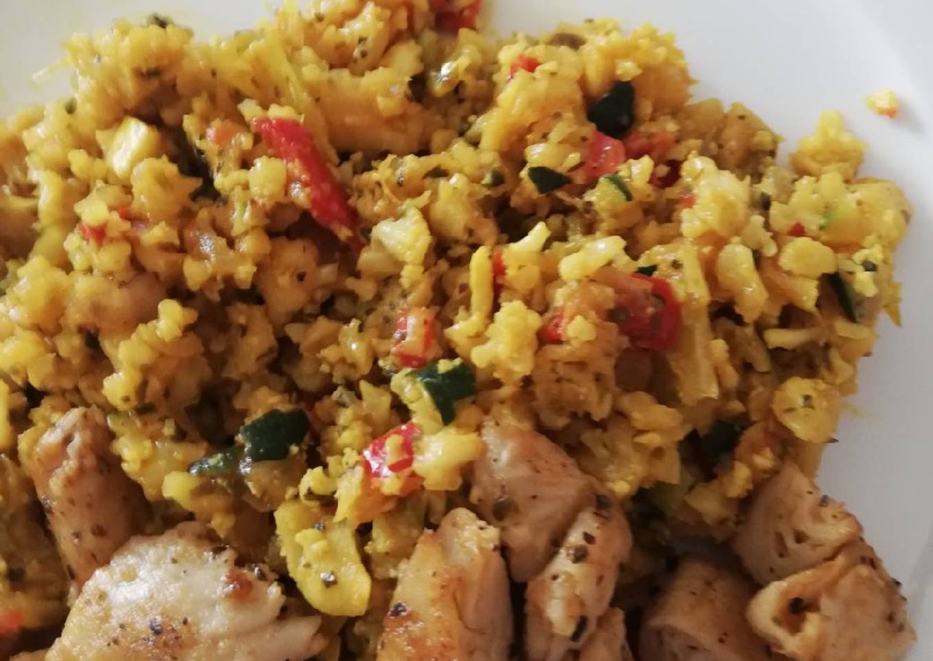 Cuscús de coliflor con especias y heura