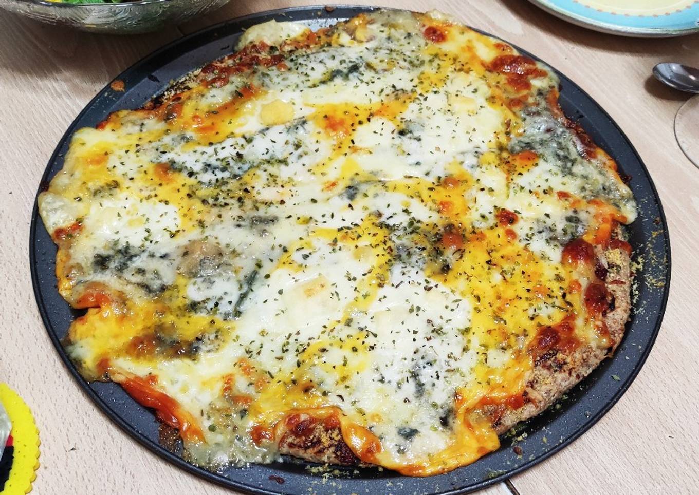 Desde que probé la pizza barbacoa y la cuatro estaciones en un taller de Cookpad Home Academy decidí investigar y probar todas las pizzas tradicionales para prepararlas y subirlas a mí recetario, con masa integral. Esta iba a ser una cuatro quesos pero en el último momento decidí darle un toque de color extra con el queso cheddar y al final fueron 5 los quesos utilizados