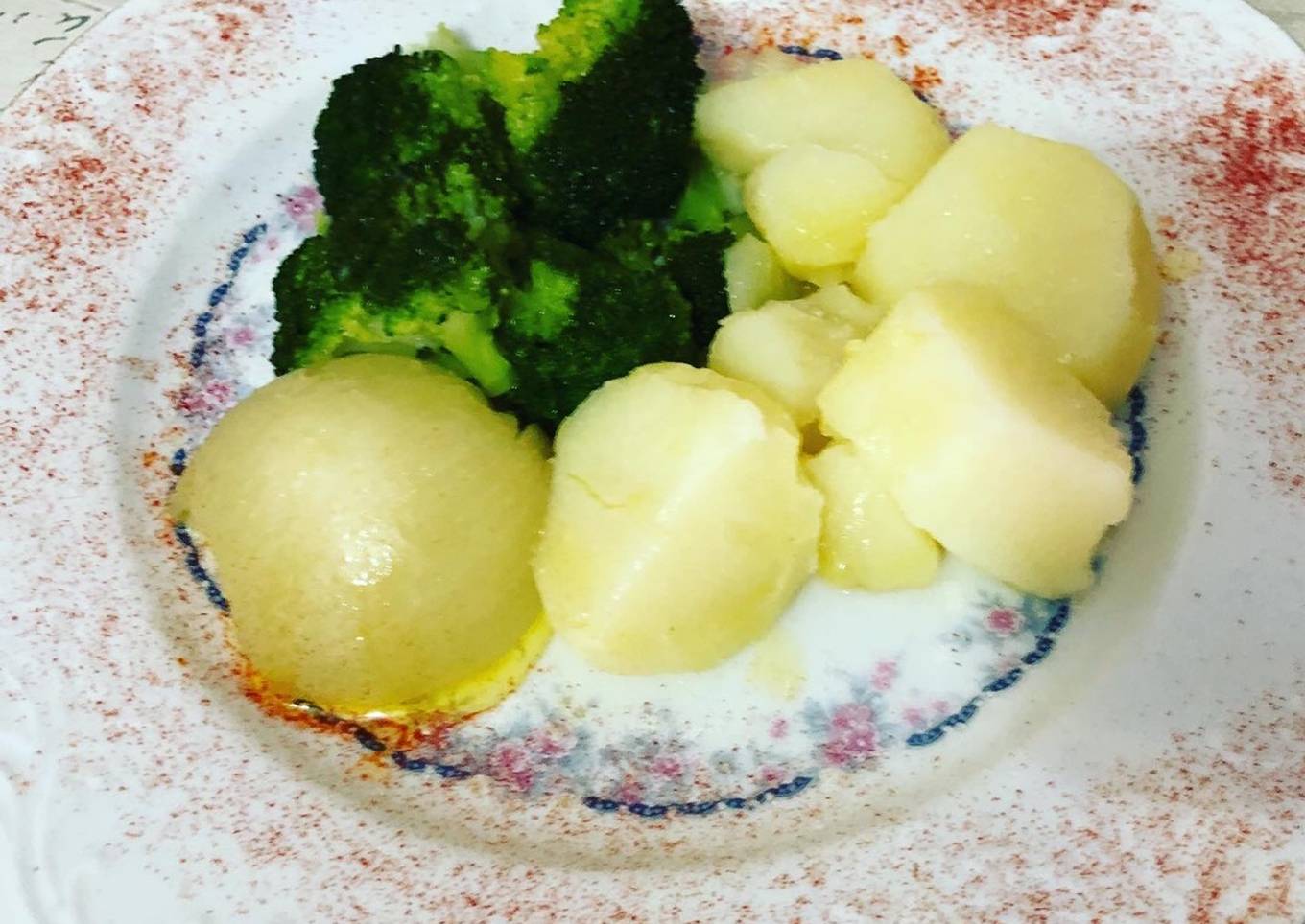 Brócoli con patatas y cebolla hervido y aliñado con Vidalim