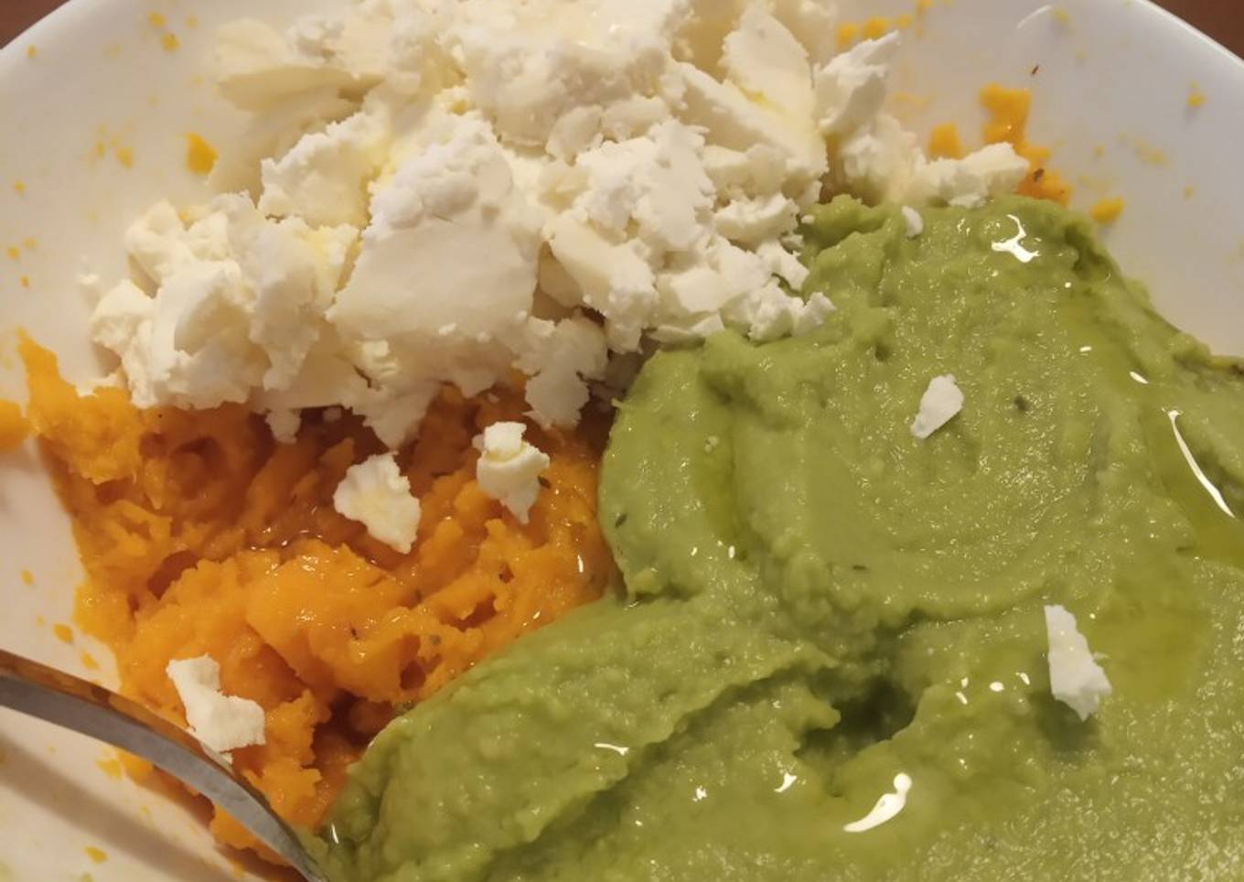 - Añadimos un chorrito de aceite por encima, ¡Y a comer! A mí suele gustarme revolverlo todo por eso de que se mezclen los sabores 😉