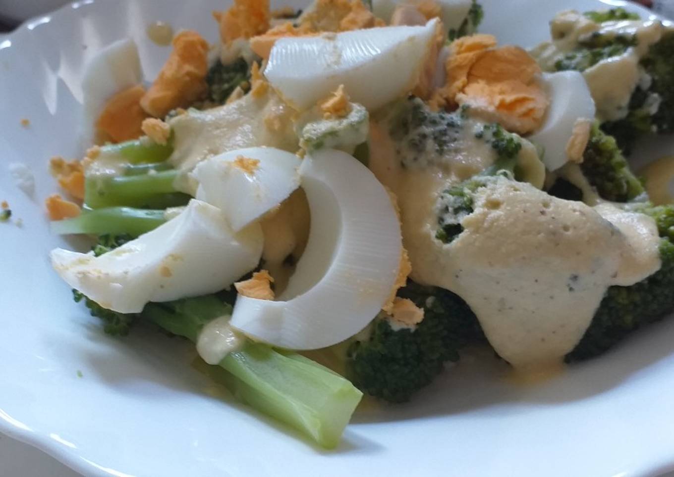 - Pasados cinco minutos desde que hemos echado el vinagre al brócoli, le añadimos la salsa y el huevo cocido que nos queda en trocitos...