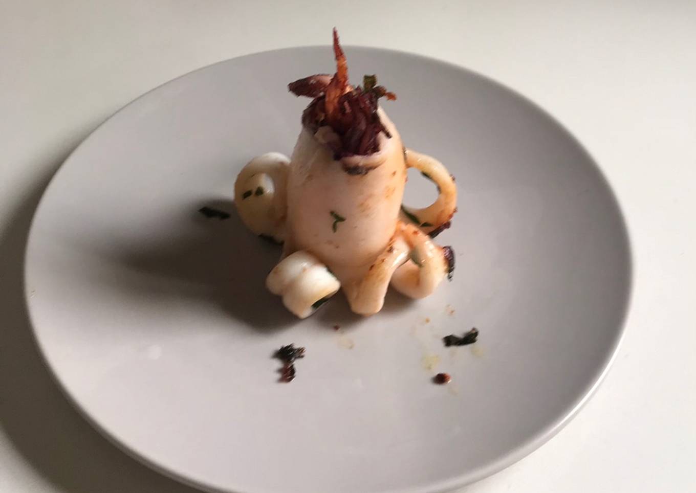 Tenía calamares para hacer a la plancha y en la tele al mismo tiempo estaban poniendo esta receta con este toque estético del calamar y así lo hice. ¡Qué rico!