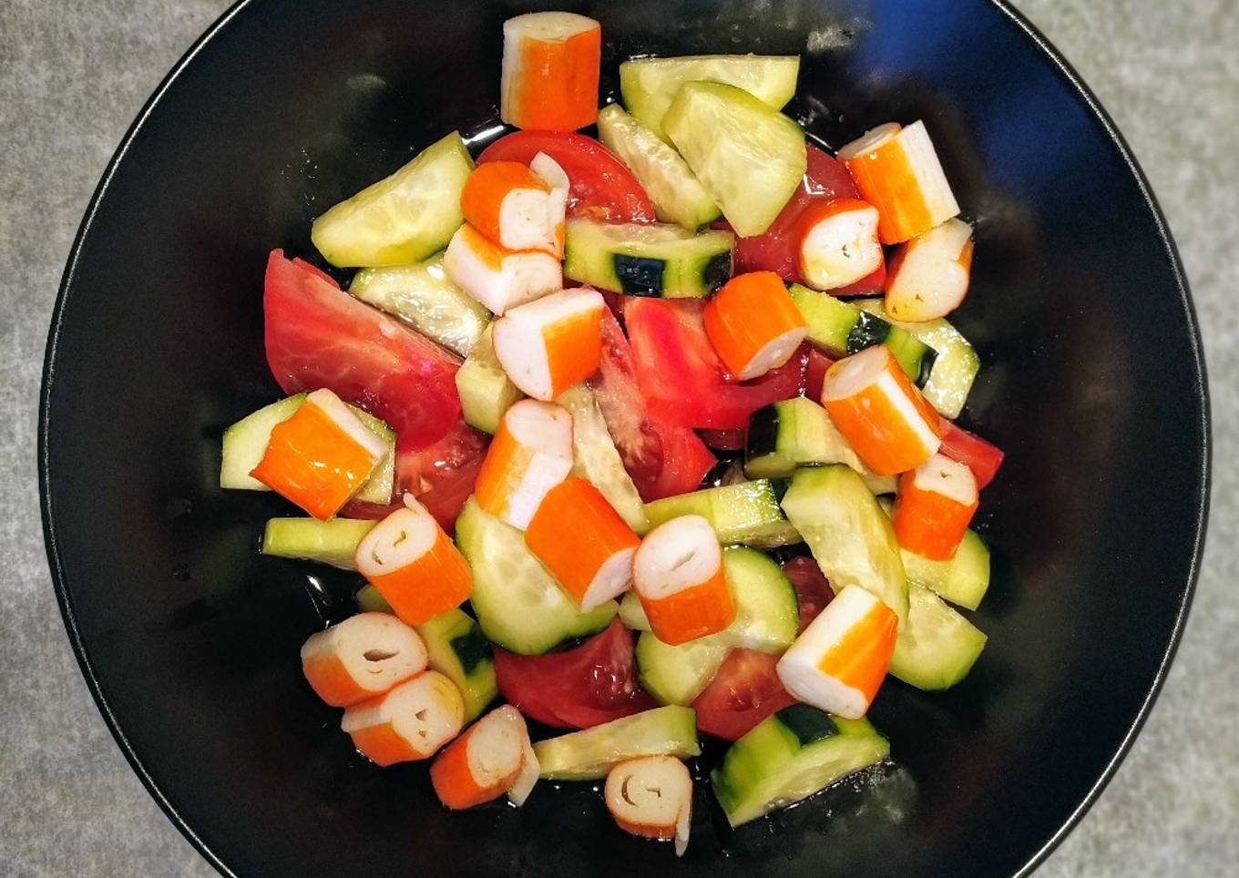 Instructions to make to make Ensaladita de tomate, pepino y surimi