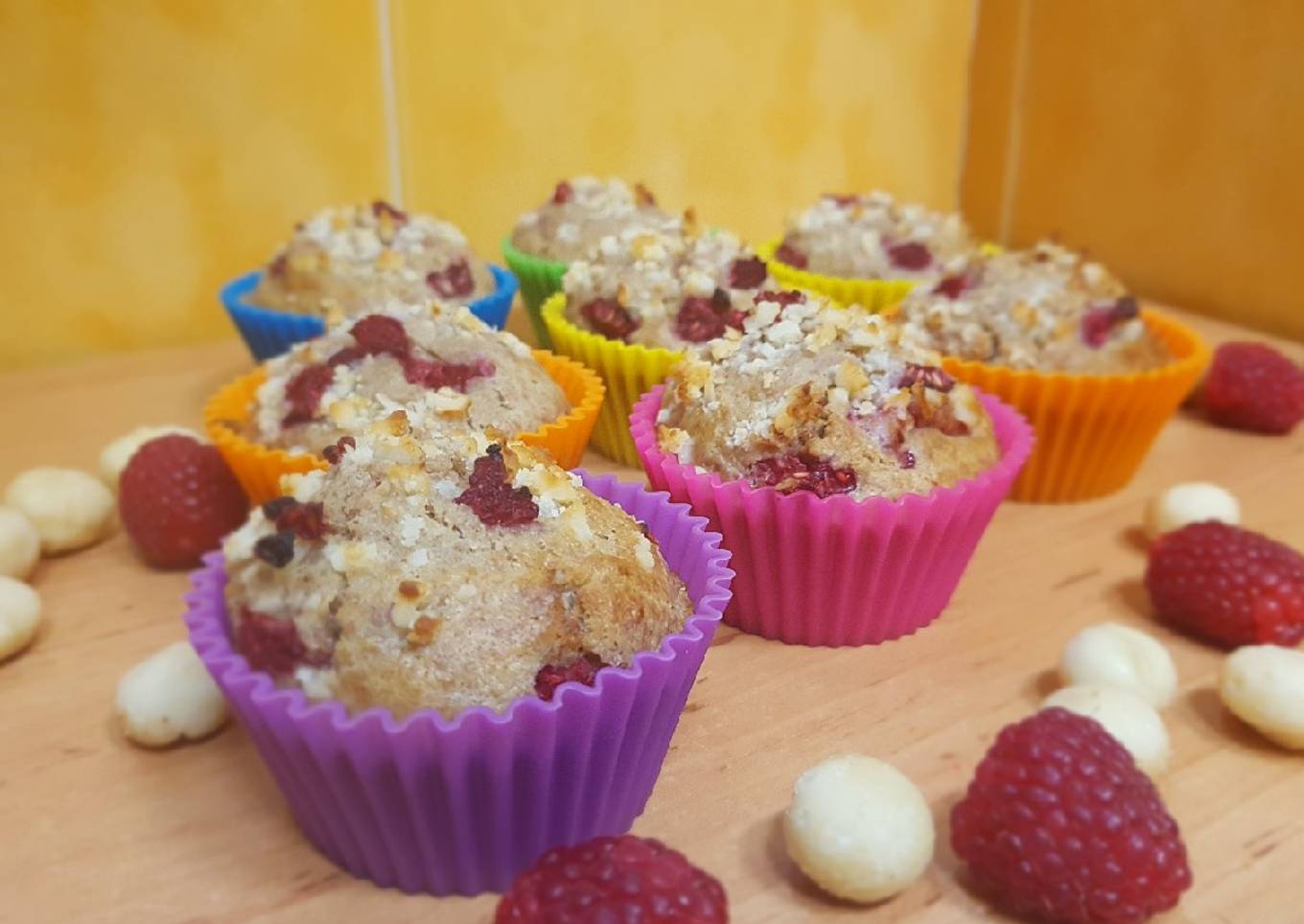 Muffins fit de frambuesas y macadamia