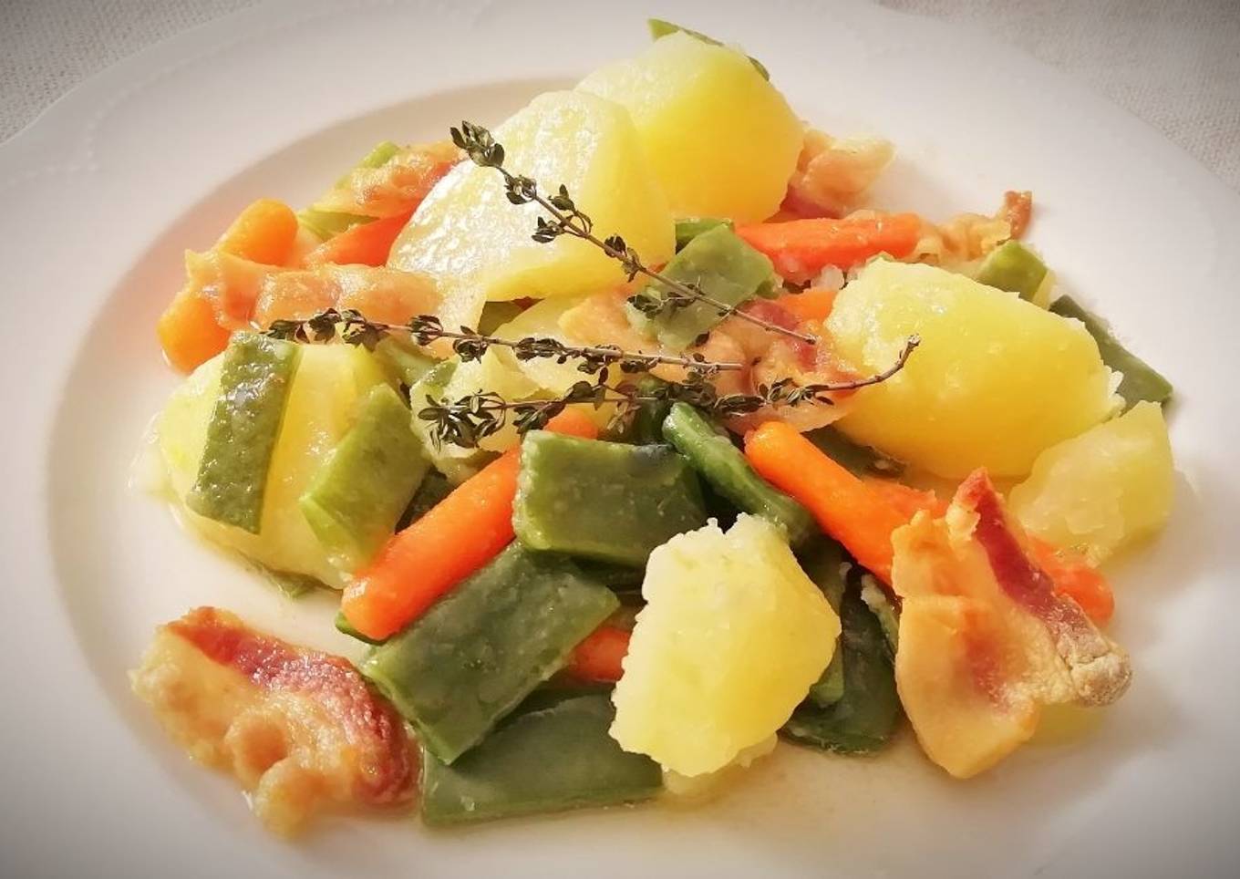 Hervido de Judías verdes, Zanahoria y Patatas con Papada ibérica